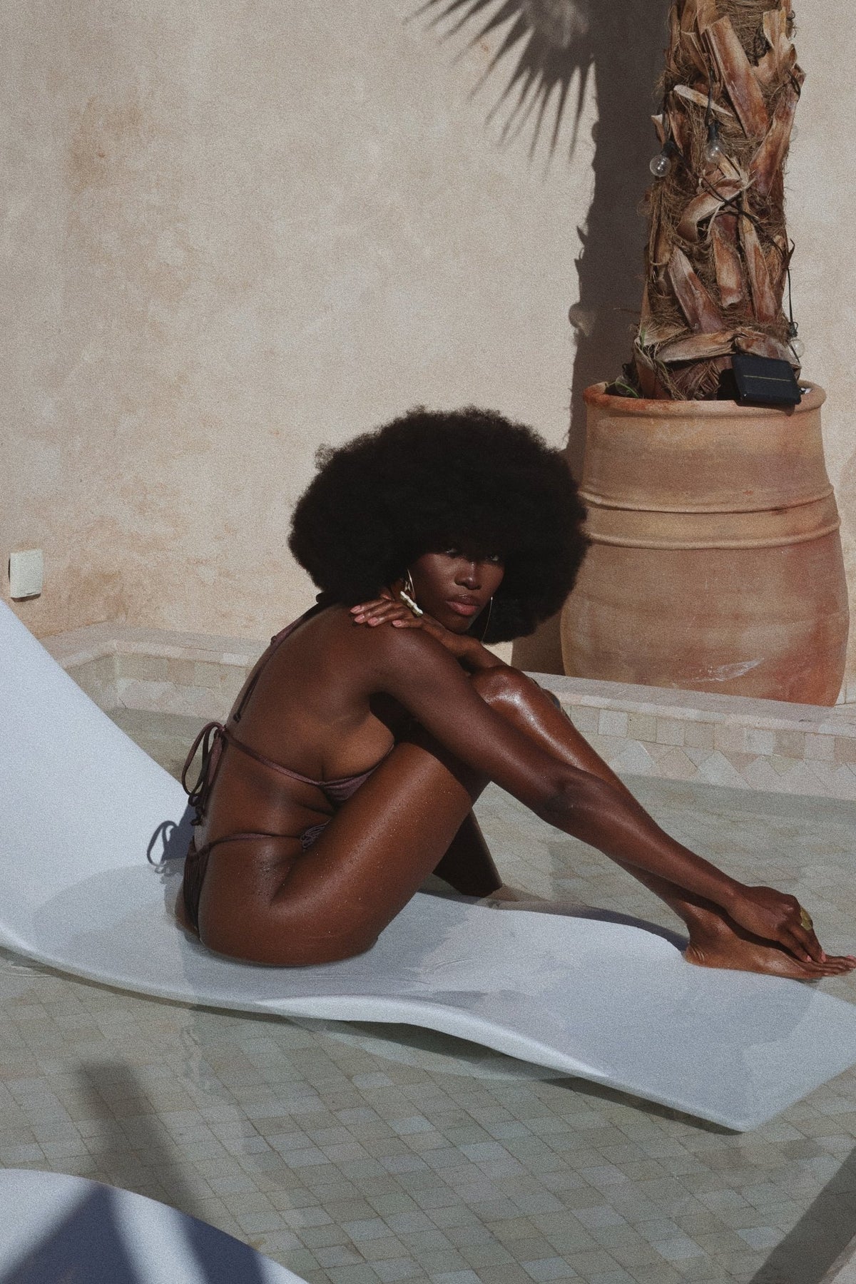 Unveil a touch of romantic mystique with the Rosewood Bliss bikini set. This stunning brown bikini is adorned with a soft, intricate rose detail that blooms against the rich, earthy tone. Inspired by the magic of a secret garden at dusk, this bikini brings together elegance and whimsy, with a design that whispers of timeless beauty and understated allure. Perfect for those who seek to weave a story of romance and sophistication with every wave.